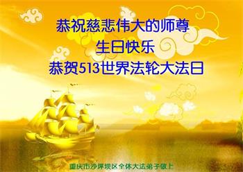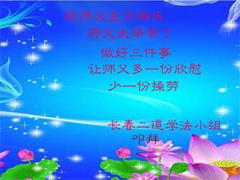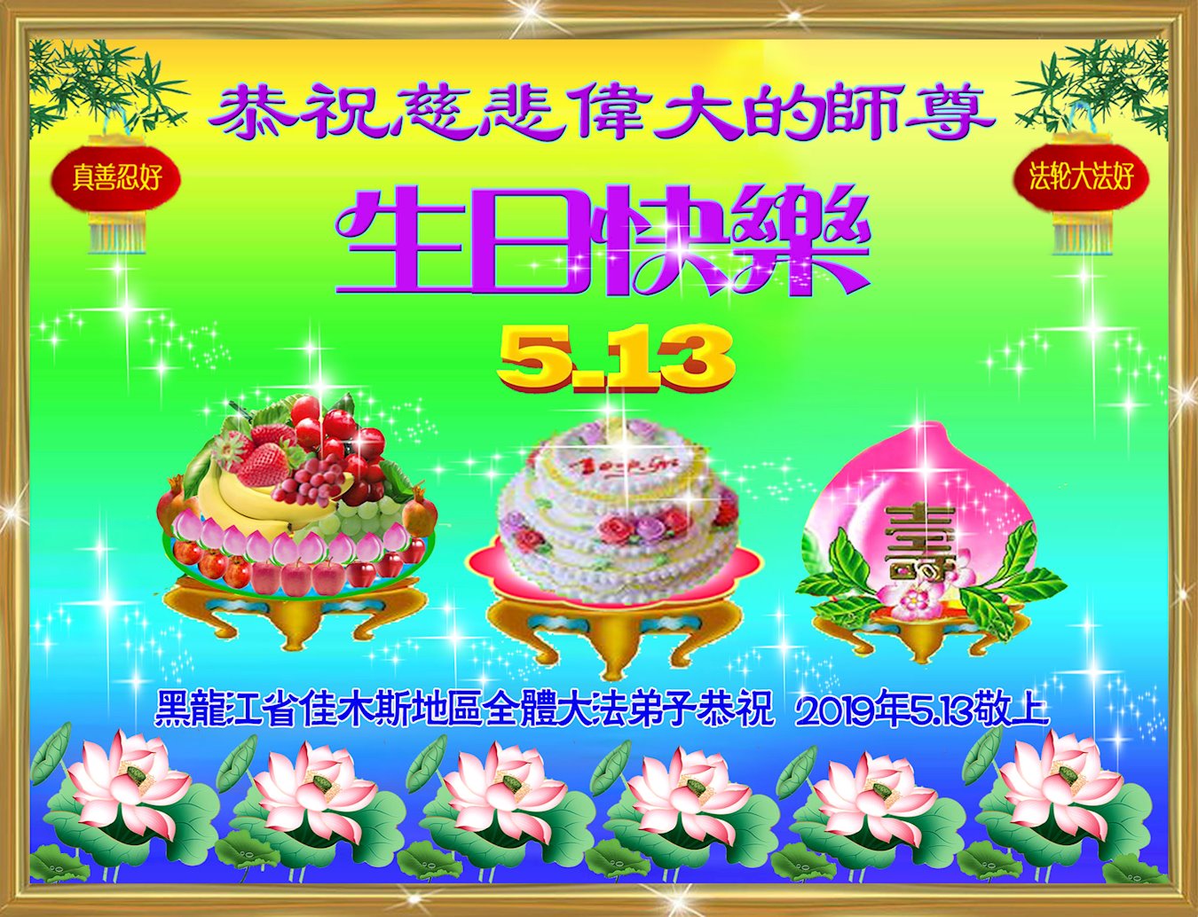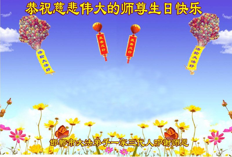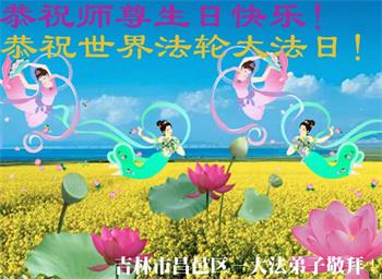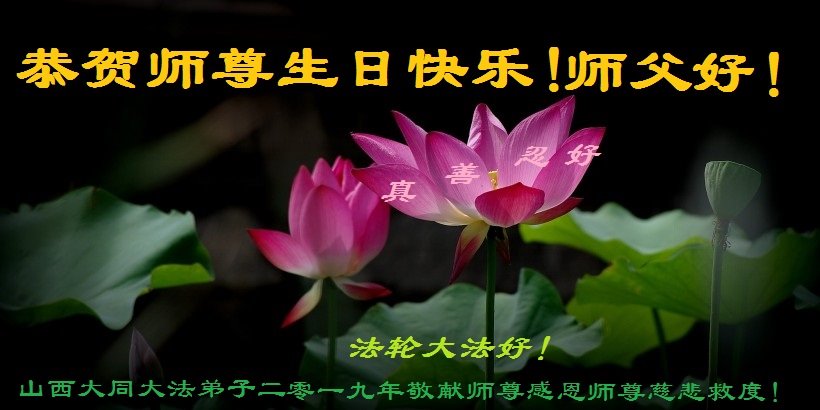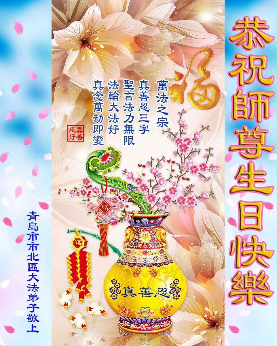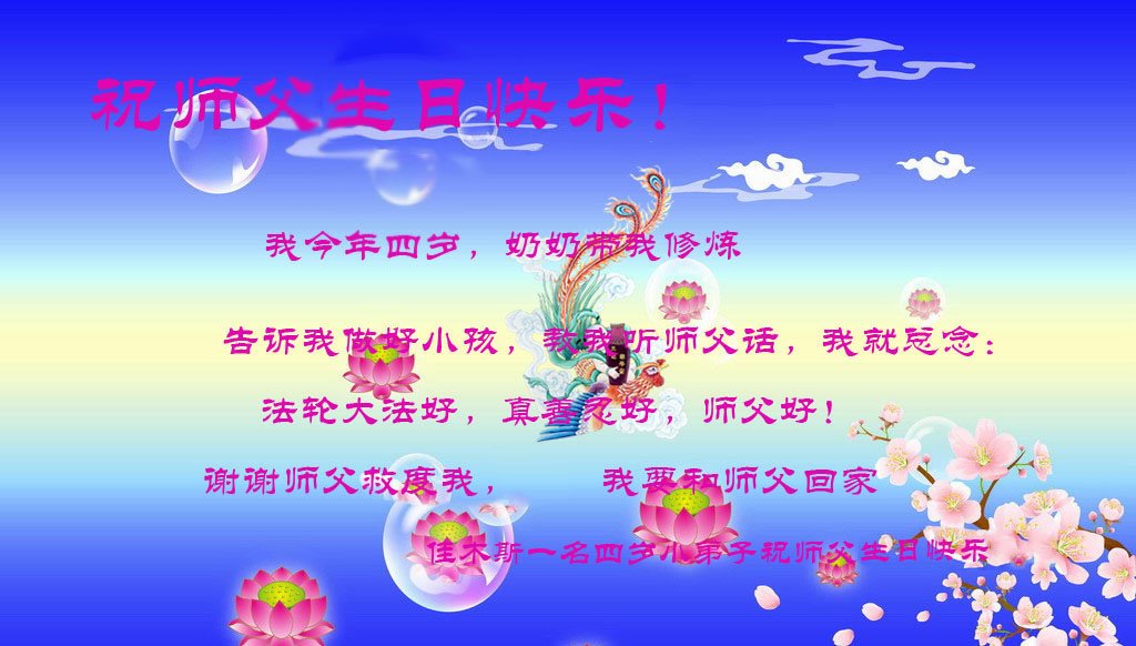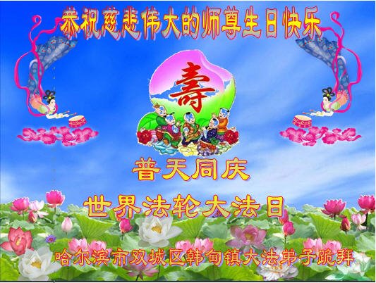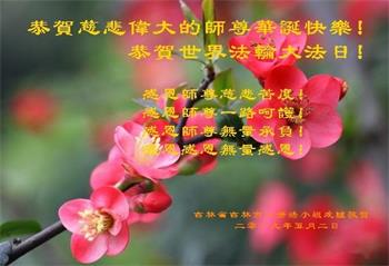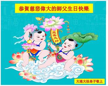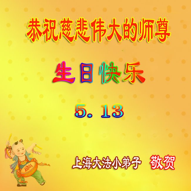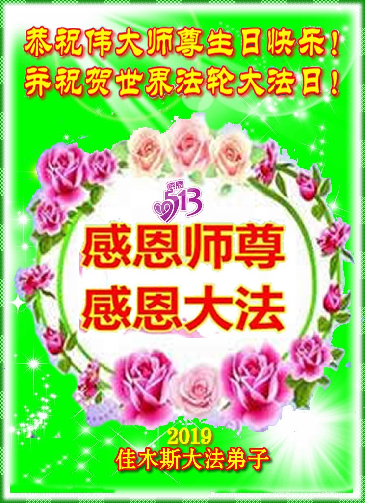 恭祝师父生日快乐!恭贺世界法轮大法日!法轮大法好!真善忍好!