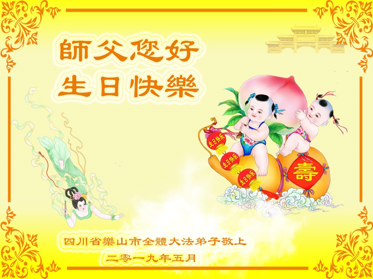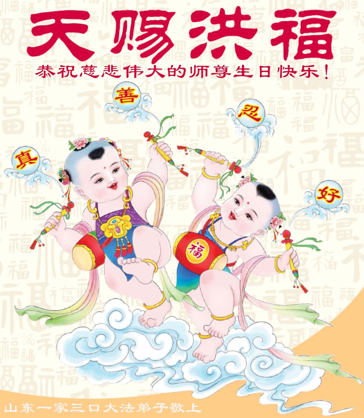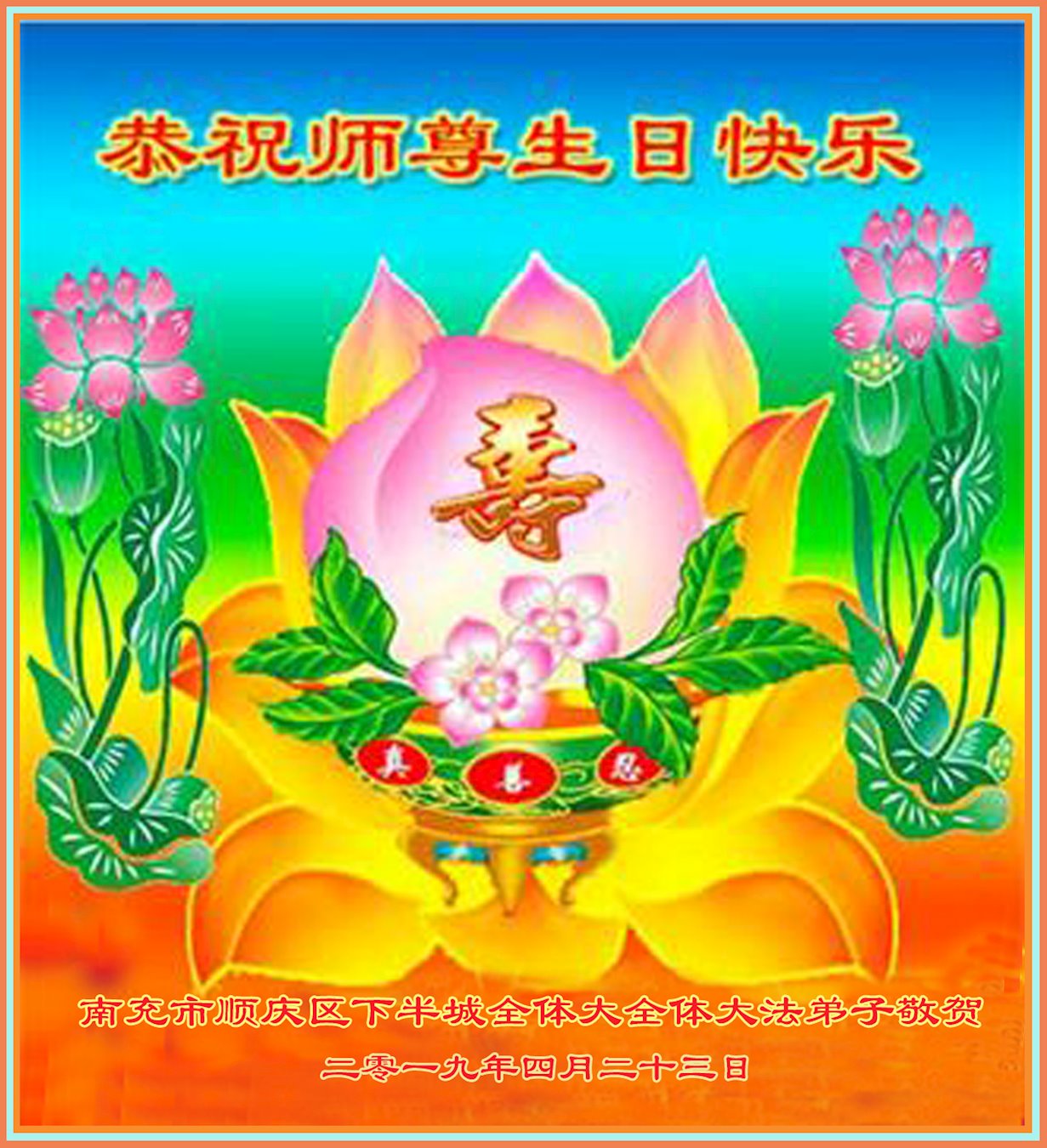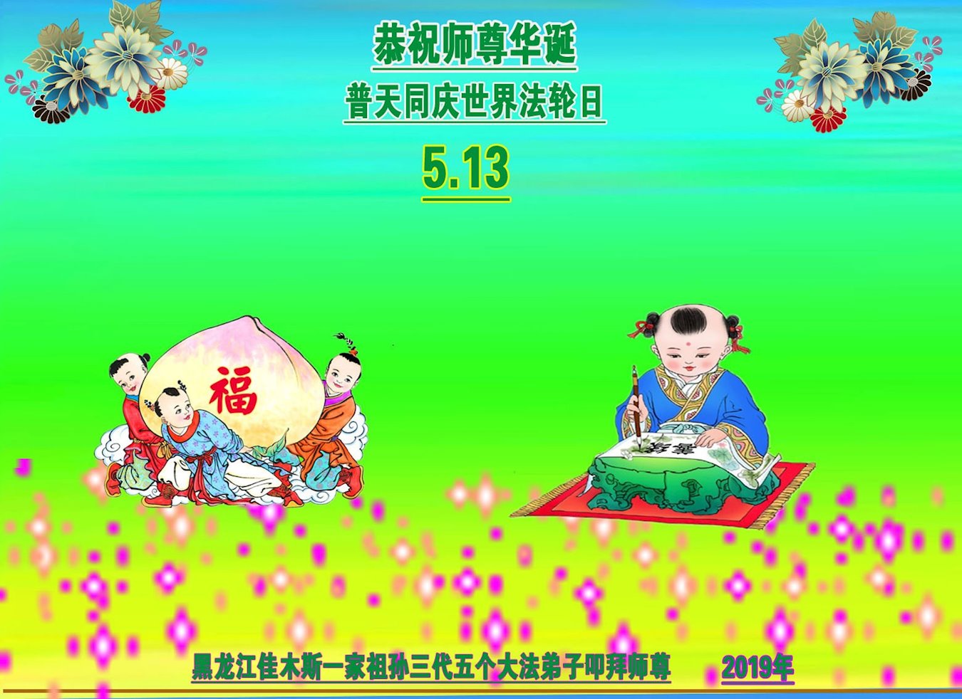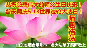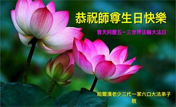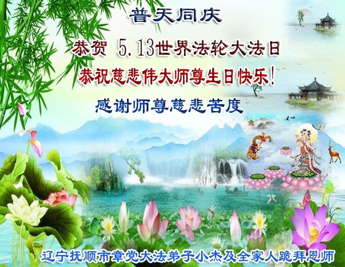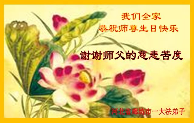 恭祝师父生日快乐!恭贺世界法轮大法日!法轮大法好!真善忍好!