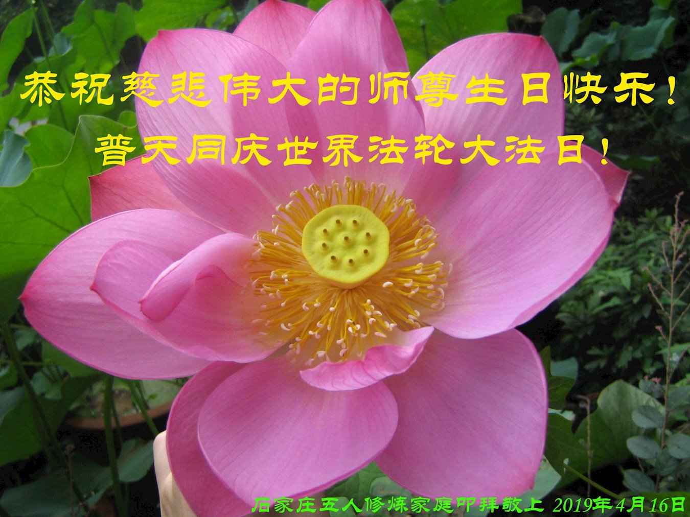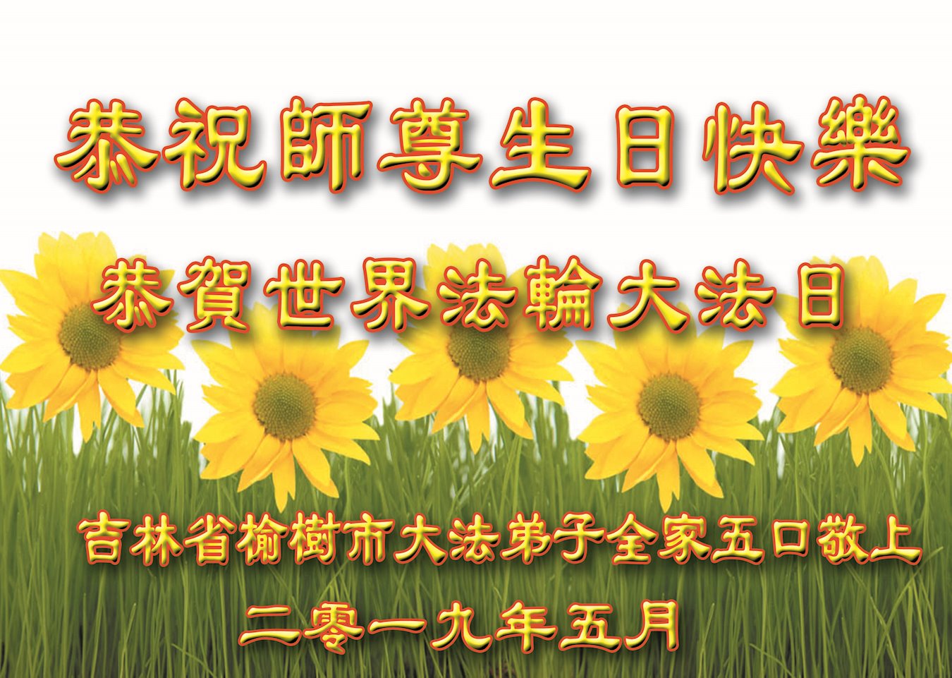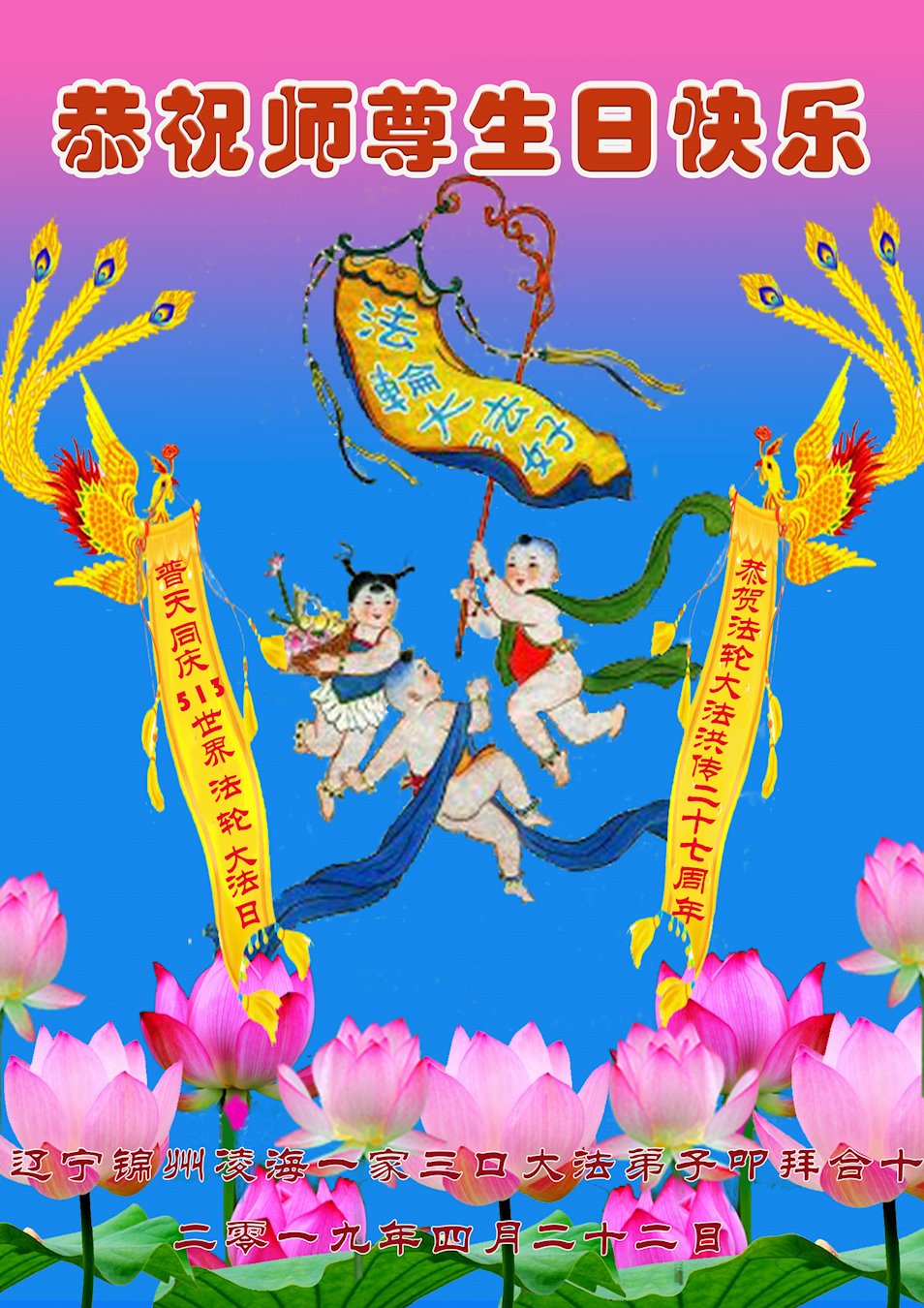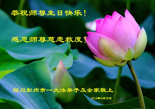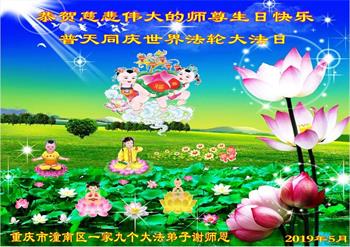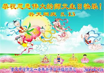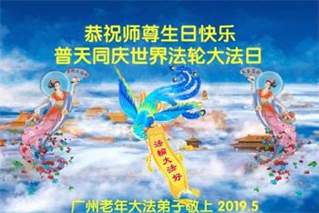 广州市大法弟子及家人恭祝慈悲伟大的师尊2019年生日快乐!感恩师尊慈悲救度,我们感谢师尊!