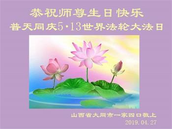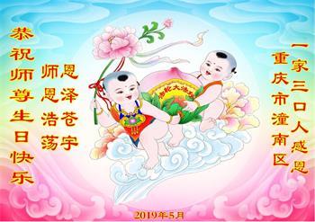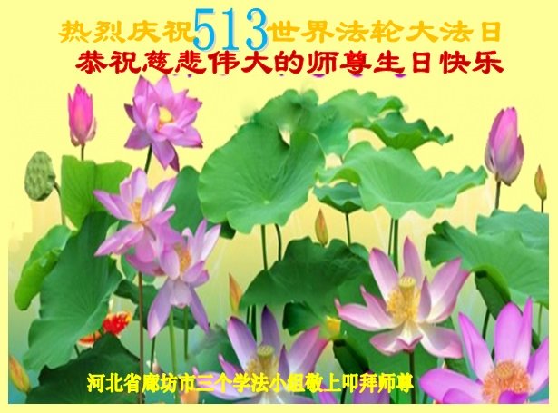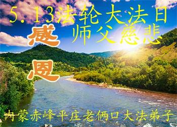 同时庆祝513世界法轮大法日!感恩师父的慈悲救度,一家三口叩谢师父!师父辛苦了!