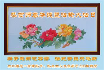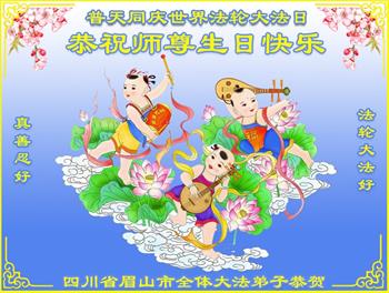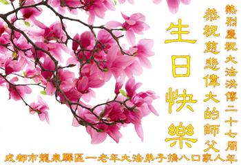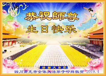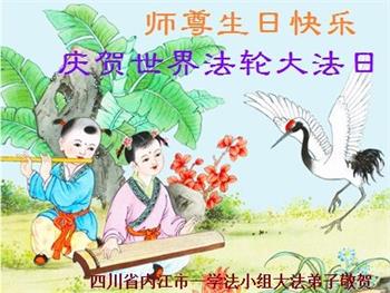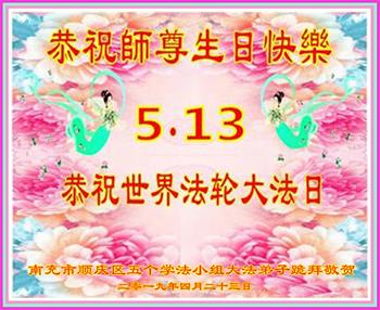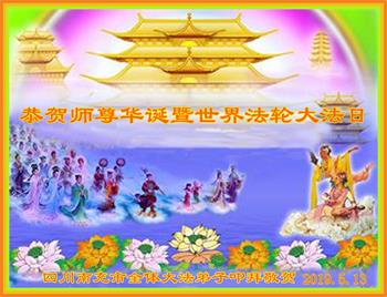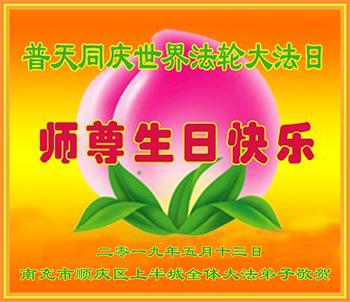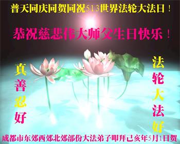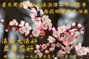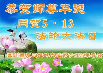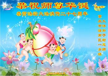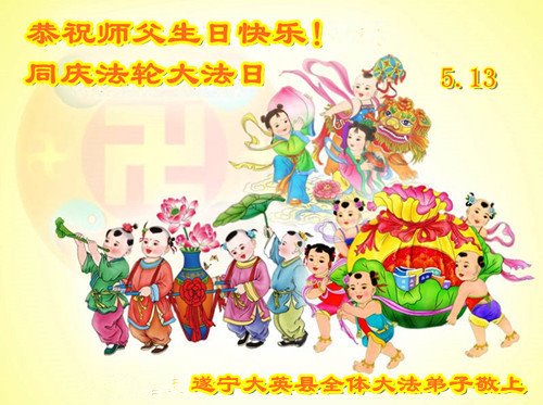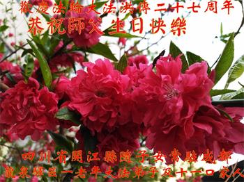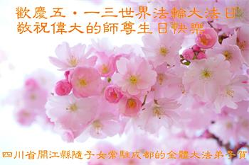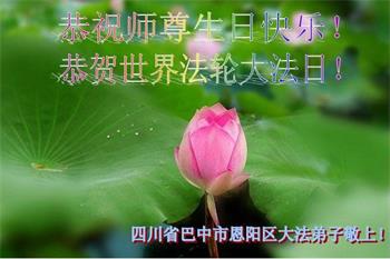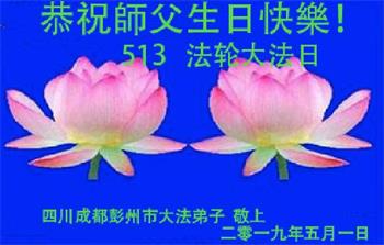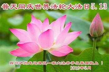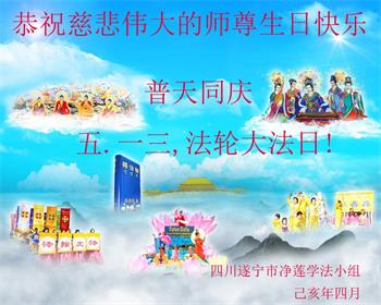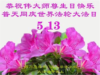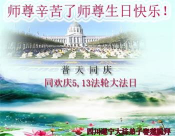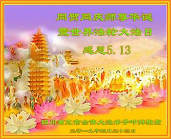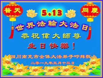 四川省营山一退休教师大法弟子同庆同祝同颂五·一三世界大法日!