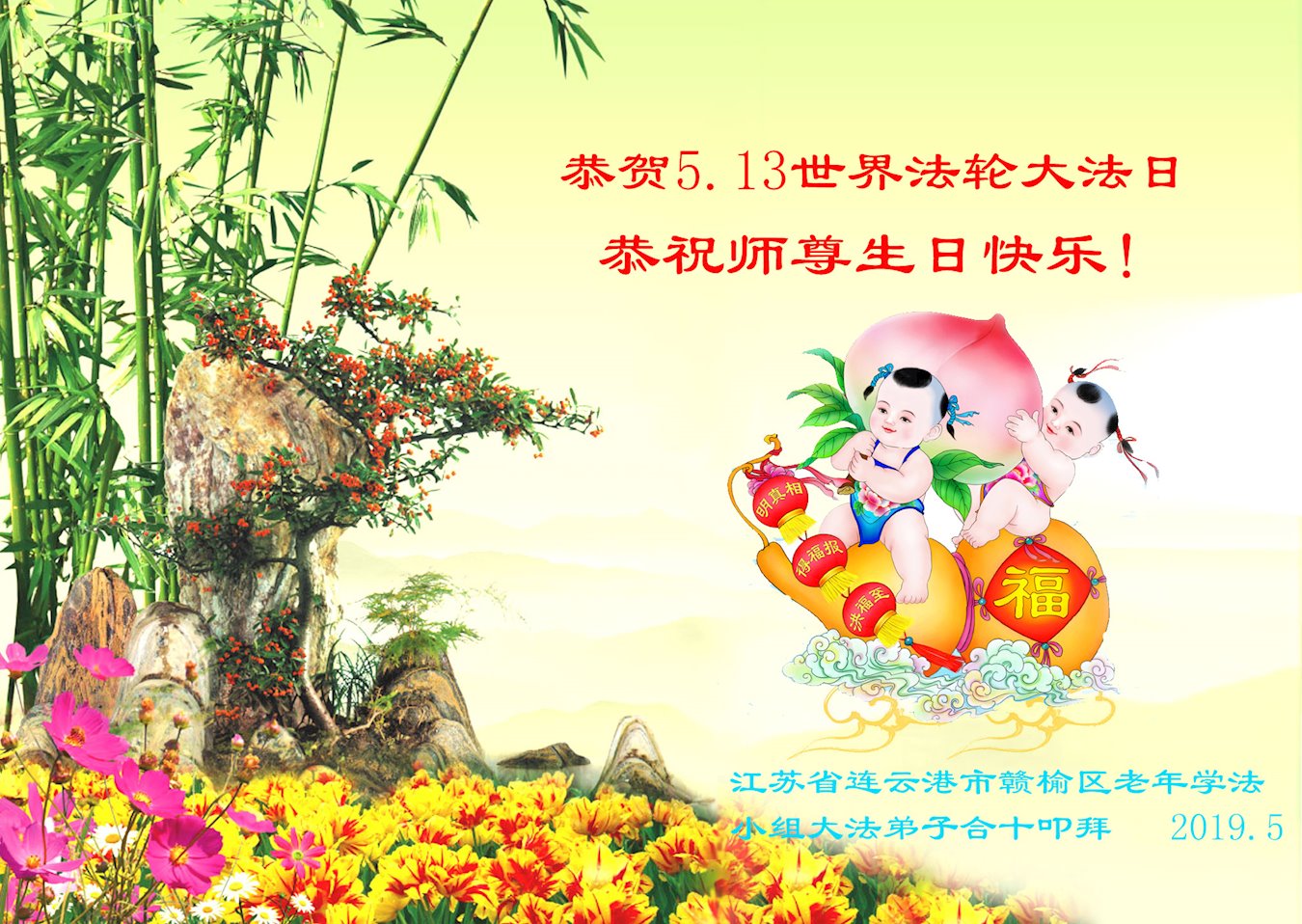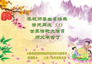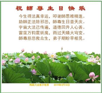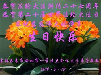 <英文版: http://en.minghui.org/html/articles/2019/5/9/176849.html>教育系统大法弟子恭贺法轮大法日暨师尊华诞(20条)