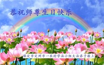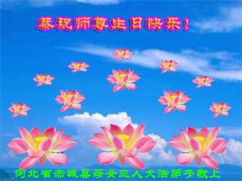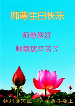 师父您好!师父生日快乐!凌海乡村全体大法弟子恭祝师父生日快乐!我们听师父的话,实修,多救人。感恩师父慈悲救度!