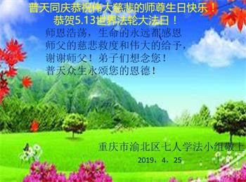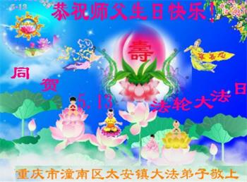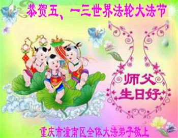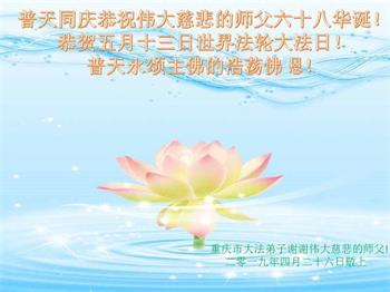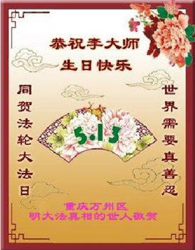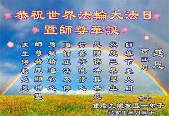 • 重庆大法弟子恭贺世界法轮大法日暨师尊华诞(18条)