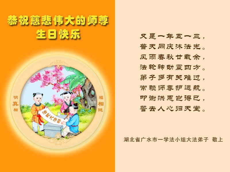 • 湖北大法弟子恭贺世界法轮大法日暨师尊华诞(23条)