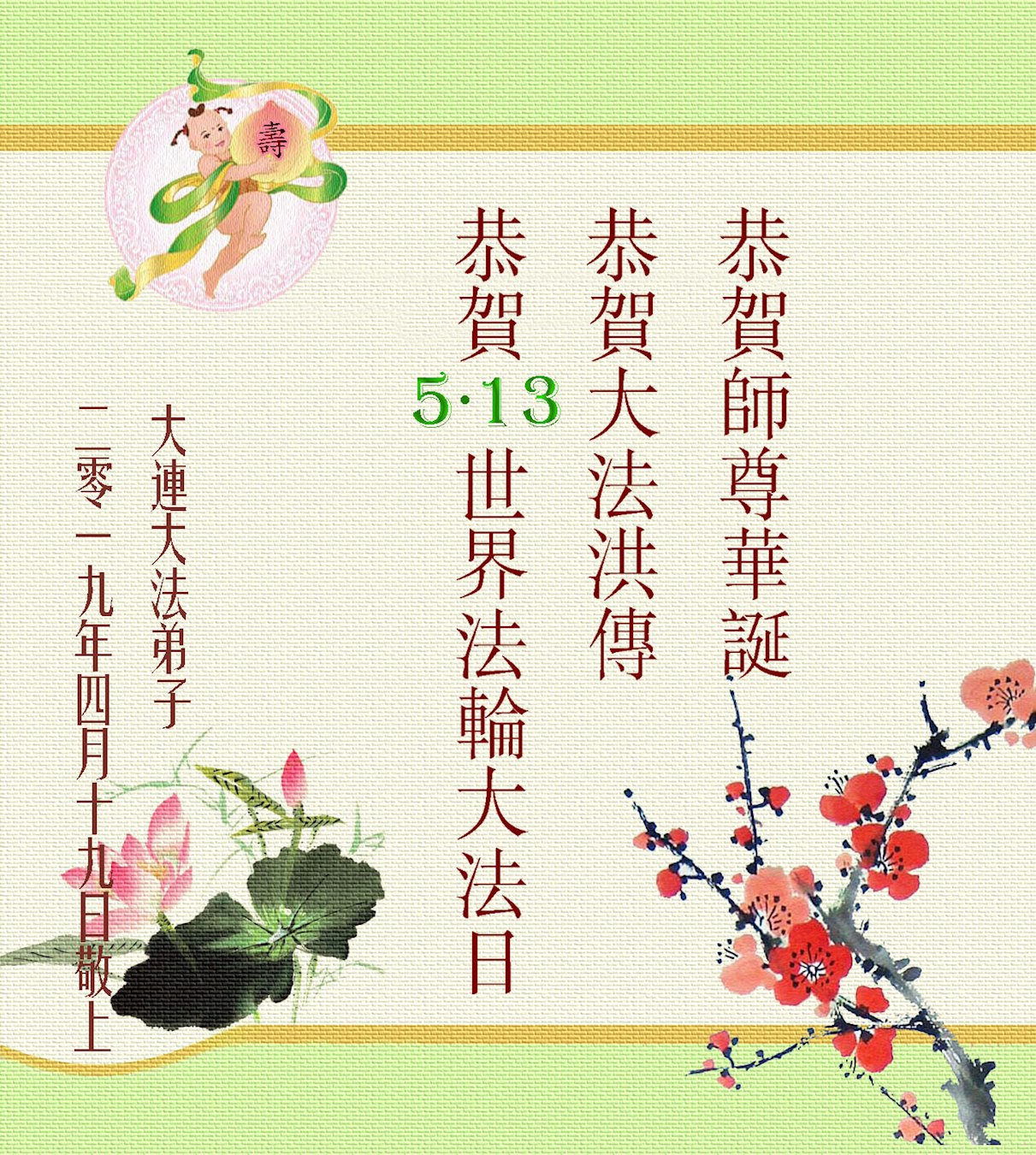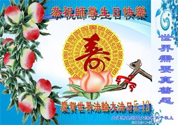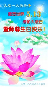 • 大连大法弟子恭贺世界法轮大法日暨师尊华诞(23条)