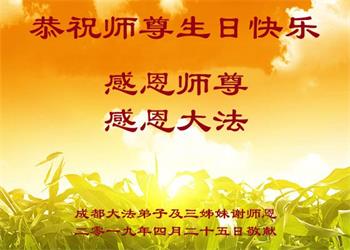 • 成都大法弟子恭贺世界法轮大法日暨师尊华诞(21条)