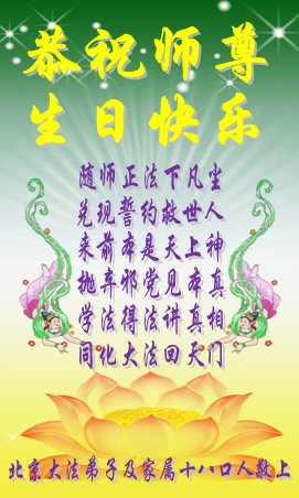 • 北京大法弟子恭贺世界法轮大法日暨师尊华诞(20条)