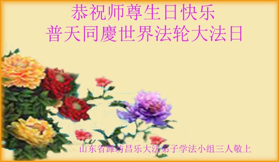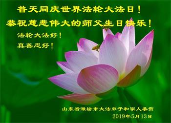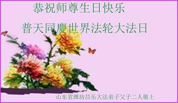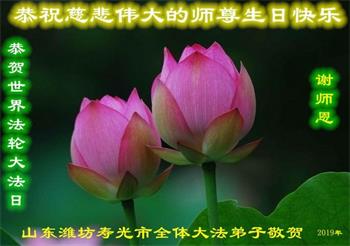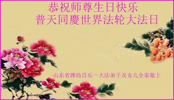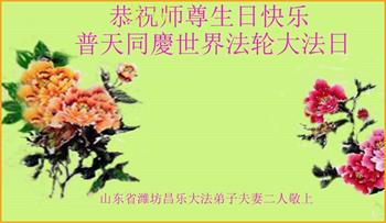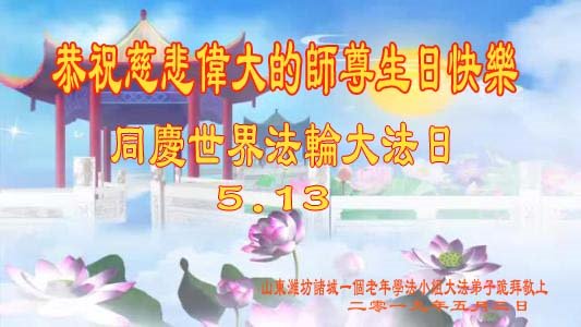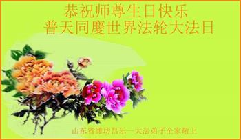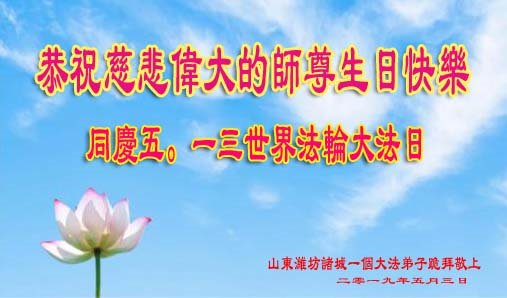 • 潍坊大法弟子恭贺世界法轮大法日暨师尊华诞(18条)
