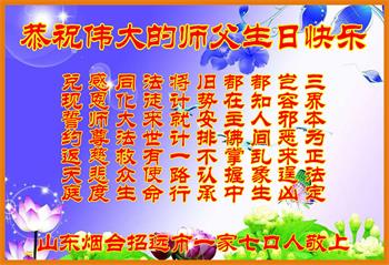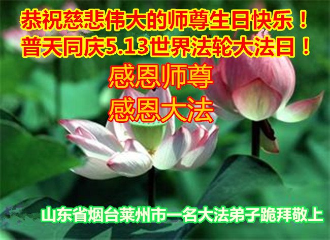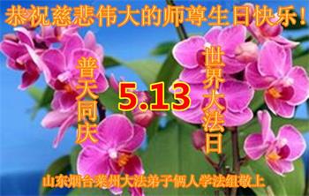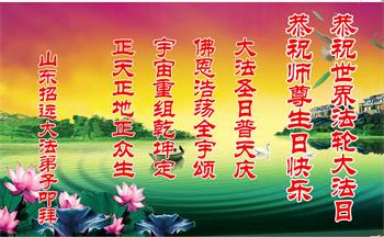 • 山东大法弟子恭贺世界法轮大法日暨师尊华诞(21条)
