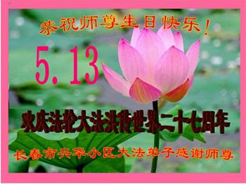 • 长春大法弟子恭贺世界法轮大法日暨师尊华诞(20条)