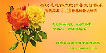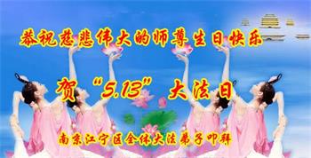 • 江苏大法弟子恭贺世界法轮大法日暨师尊华诞(21条)