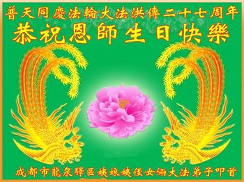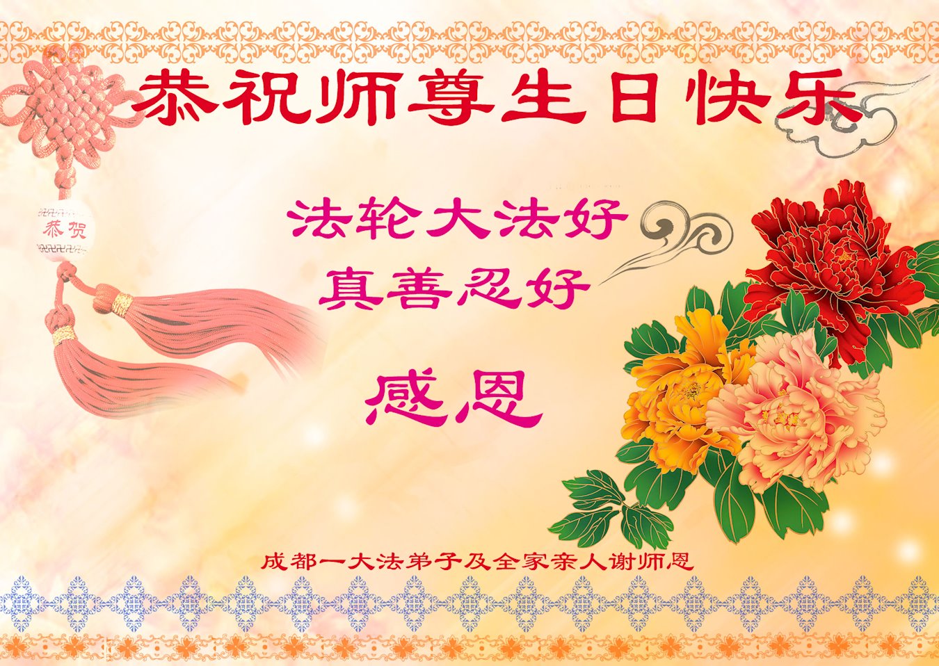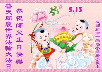 • 成都大法弟子恭贺世界法轮大法日暨师尊华诞(18条)