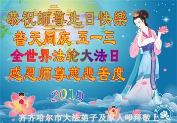 • 齐齐哈尔大法弟子恭贺世界法轮大法日暨师尊华诞(19条)