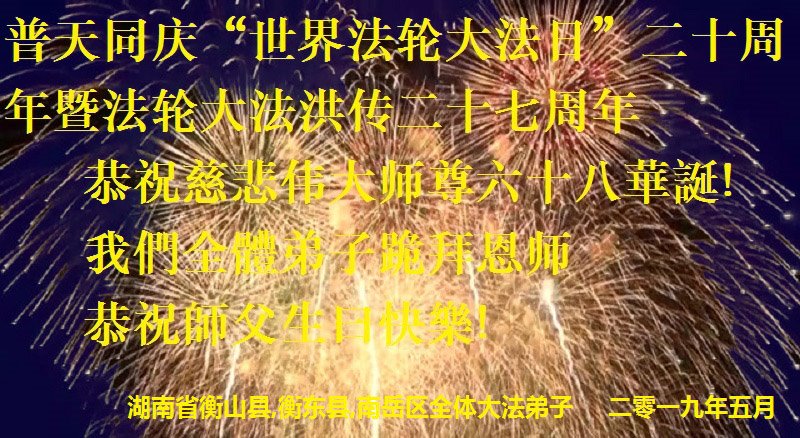 • 湖南大法弟子恭贺世界法轮大法日暨师尊华诞(21条)