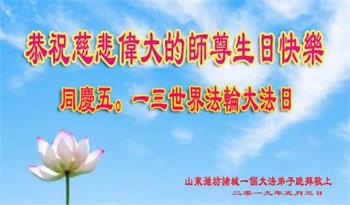 • 潍坊大法弟子恭贺世界法轮大法日暨师尊华诞(20条)