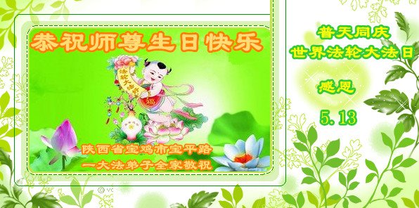 • 陕西大法弟子恭贺世界法轮大法日暨师尊华诞(18条)