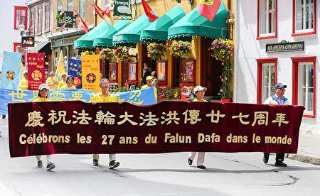 ![]() 图5:2019年6月8日,加拿大魁北克省部份法轮功学员在首府魁北克市举行游行活动,庆祝法轮大法弘传27周年。 |