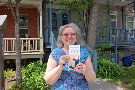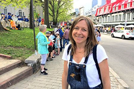 “(游行)非常令人愉悦,你们带来了美好,谢谢你们。”当游行队伍经过市民诺艾勒(Renée Noël)女士家时,她非常高兴,立即来到马路边迎接,她说每年都能看到法轮大法的游行,每次都感到非常愉悦,“一看到游行队伍,就让我想起美好的东西,还有美好的古老文化。”她感谢法轮功学员把美好带到魁北克市。
