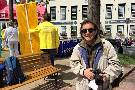 游客比罗多(Jocelyn Bilodeau)先生谴责中共的迫害,他说:“迫害炼功人是一种耻辱。我觉得精神提升十分重要,可以改善人与人之间的关系。我鼓励他们(法轮功学员)继续坚持下去,通过修炼改善身心,这非常珍贵。”