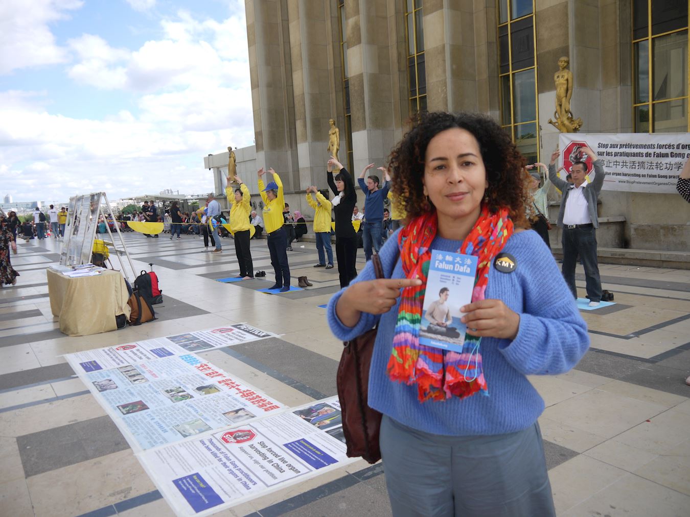 娜迪雅(Nadia)是能量师,来自布鲁塞尔,原籍摩纳哥。一个偶然的机会,她在网上看到有关法轮功的文章,知道法轮功学员因为修炼这样一种健康的功法而在中国被无辜打压、迫害。这天她正好路过人权广场,被法轮功展板吸引,就直接过来签名支持法轮功。