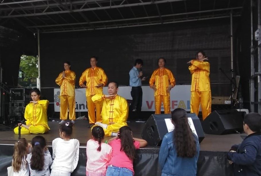 六月十五日,吕嫩市迎来第三十六届城市节,此次城市节的主题是“多彩的节日”,各族裔民众身穿民族服装在舞台上载歌载舞。法轮功学员作为唯一的中国团体也参加了文化节。