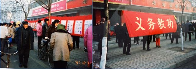 ![]() 严冬里天津百姓认真观看法轮功弘法图片 |