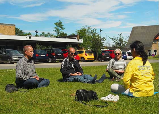 丹麦大哥本哈根的霍尔特市政府志愿者中心举办社区活动,法轮功学员应邀参加,展出“真善忍美展”部分作品并教授功法。