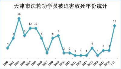据明慧网不完全统计,二十年来天津法轮功学员被迫害致死人数高达119人,其中明慧网统计被迫害致死案例是61人,因学过法轮功而被迫害致死者和详情需要继续确认的案例58人。