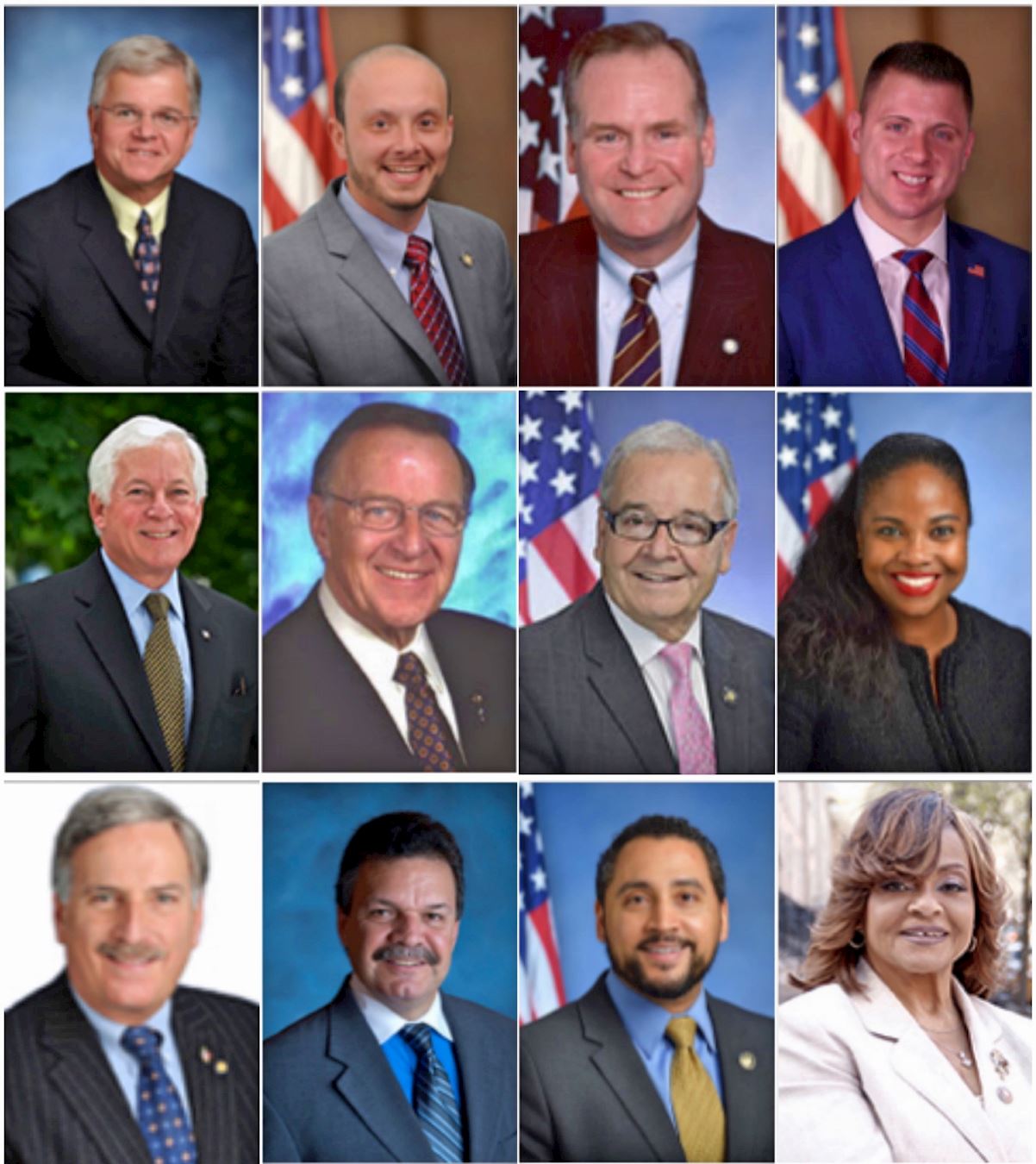 图1:上图从左至右、从上至下,分别是纽约州第一选区众议员小弗雷德·蒂勒 (Fred W. Thiele,Jr.)、第七选区众议员安德鲁·加尔巴里诺(Andrew R. Garbarino)、第八选区众议员迈克尔·菲茨帕特里克(Michael J. Fitzpatrick)、第九选区众议员迈克·利佩特里(Mike Lipetri)、第十三选区众议员查尔斯·拉维恩(Charles D. Lavine)、第十四选区众议员大卫·麦克唐纳(David G. McDonald III)、第十六选区众议员阿诺乔尼·杜尔索(Anthony D'Urso)、第十八选区众议员泰勒·雷诺(Taylor Raynor)、第二十四选区众议员大卫·韦普林(David I. Weprin)、第五十一选区众议员费利克斯·奥尔蒂斯(Félix W. Ortiz)、第六十八选区的众议员罗伯特·罗德里格斯(Robert J. Rodriguez)和第七十选区众议员伊内兹·狄更斯(Inez E. Dickens)