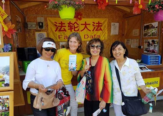 六月九日,奥地利维也纳Hirschstetten 的花园举行了盛大的多元文化的民族节,法轮功学员参加了活动,向民众介绍功法,并揭露中共对法轮功的残酷迫害。