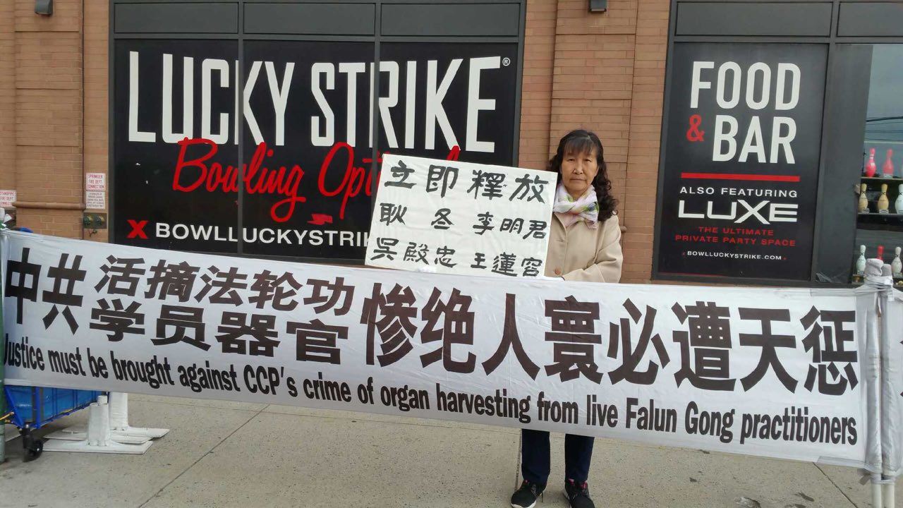 当得知中共监狱对耿冬加重迫害,耿冬的岳母、纽约法轮功学员赵玉琴每天站立于纽约中领馆外面街头,要求“立即无罪释放耿冬、李明君、吴殿忠、王莲荣”,抗议中共对法轮功学员的非人迫害。
