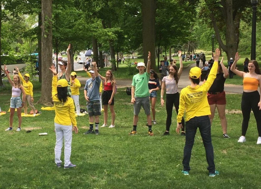 二零一九年开始,每天都有多伦多青年学员到此来弘法和讲真相。他们的体会是:太多人在等着学功和了解真相了,我们是大法弟子,讲真相救人是我们的使命。