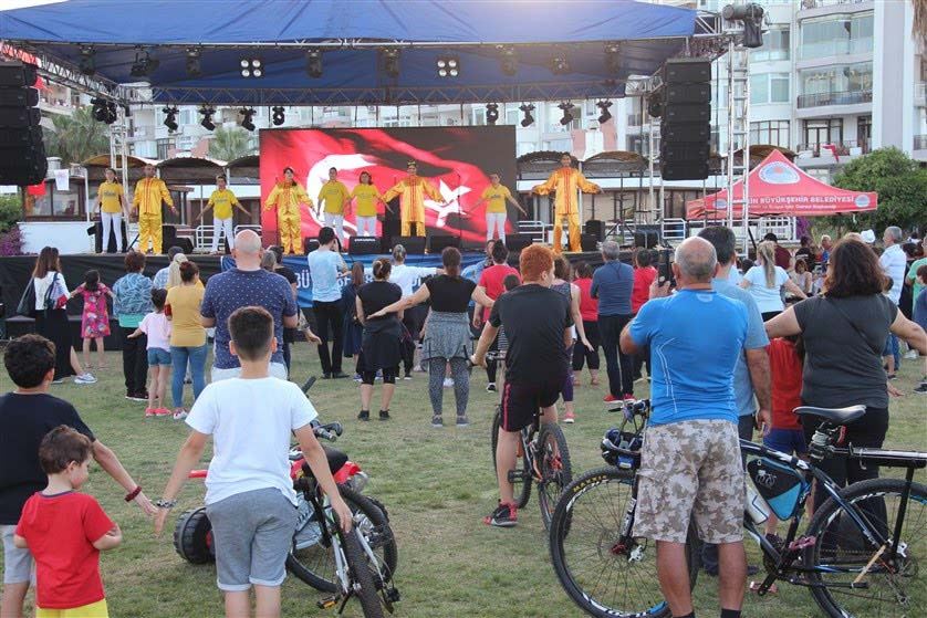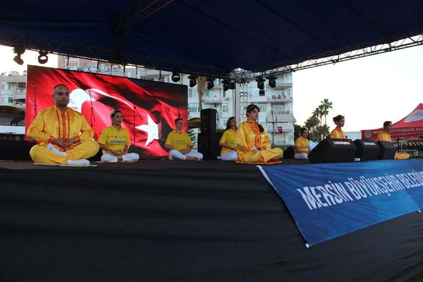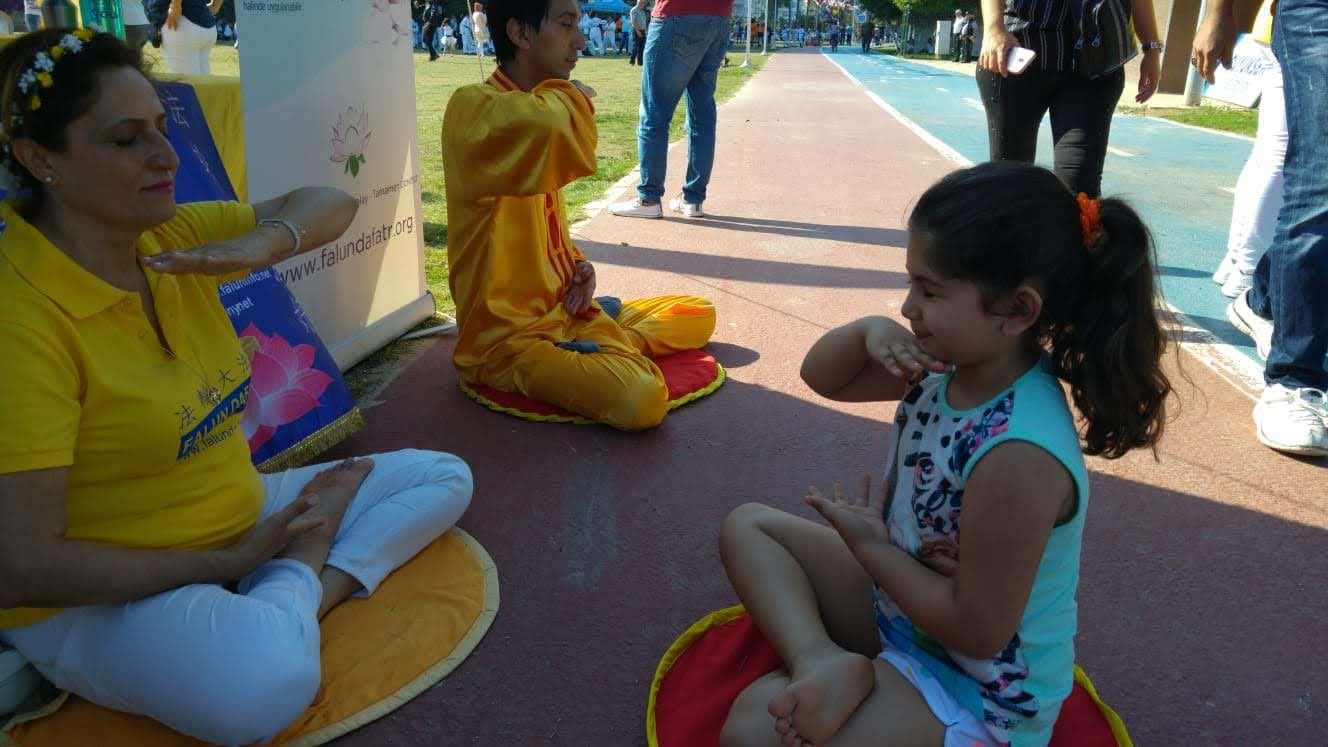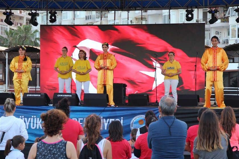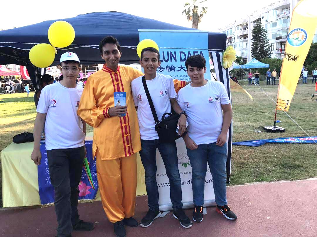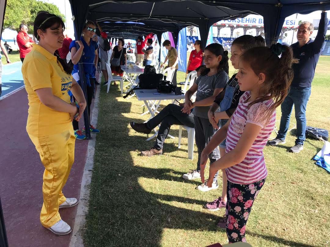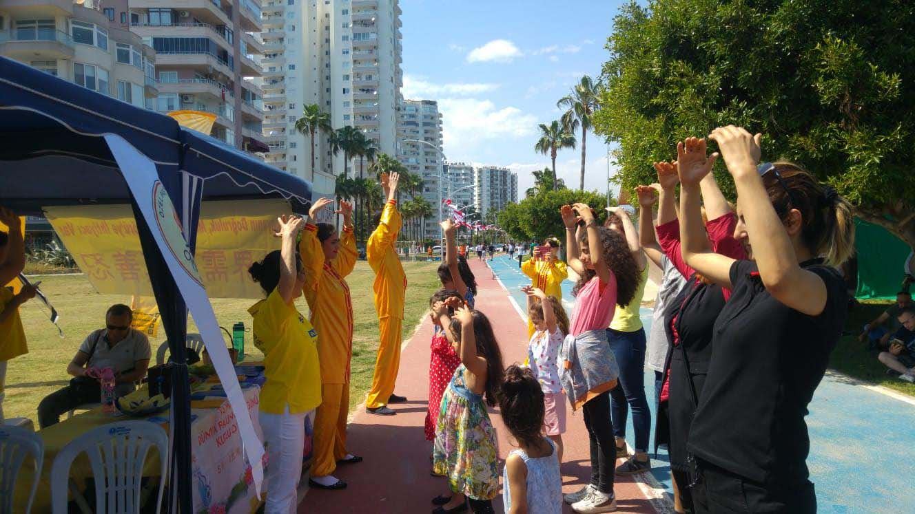 【明慧网二零一九年六月二十七日】五月十八日和十九日,土耳其法轮功学员应邀参加在梅尔辛市(Mersin)举行的“青年体育节活动”(Youth and Sports Day)。法轮功学员设立了真相摊位,并在舞台上展示功法,不少民众被祥和的法轮功功法所吸引,学炼法轮功。