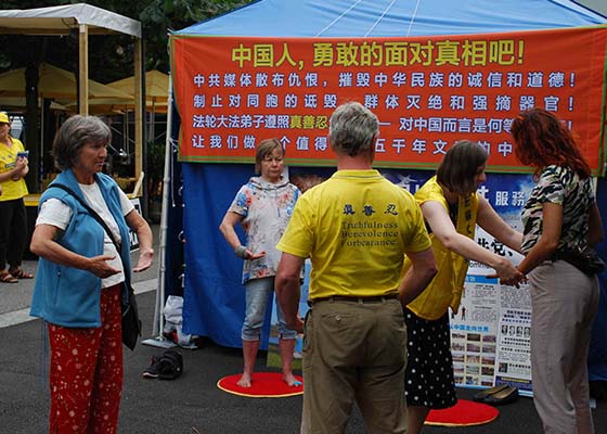 瑞典游客支持法轮功 谴中共迫害