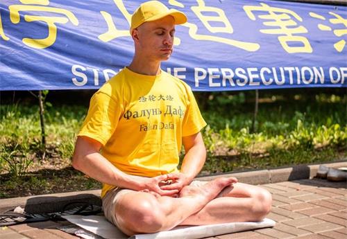 法轮功学员梭罗米亚(Solomiya)表示很喜欢炼功,能让他变得冷静,变得身体强健。