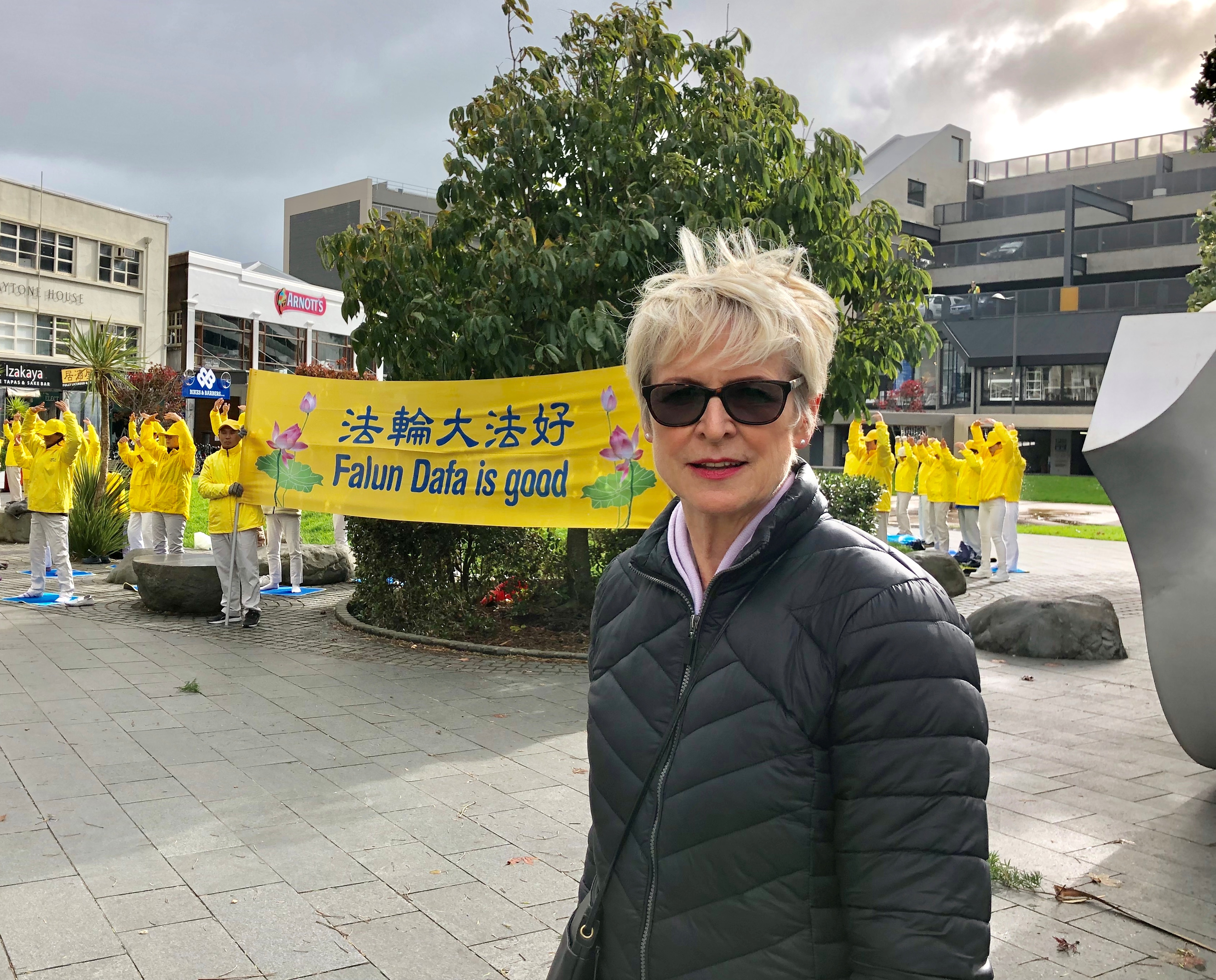 費莉西蒂(Felicity)是一名医护人员,了解法轮功,也知道法轮功学员在中国面临的艰险。她说:“非常恐怖,我刚刚看了《血刃》这部电影,了解了在中国发生的活摘器官的事件。你们所需要做的,就是坚持不懈的做现在做的事,虽然这不容易,但是就象走每一条要走的路,过程中,我们尽量要完善自己,做到最好,多包容,今天这样的功法展示非常美好。”