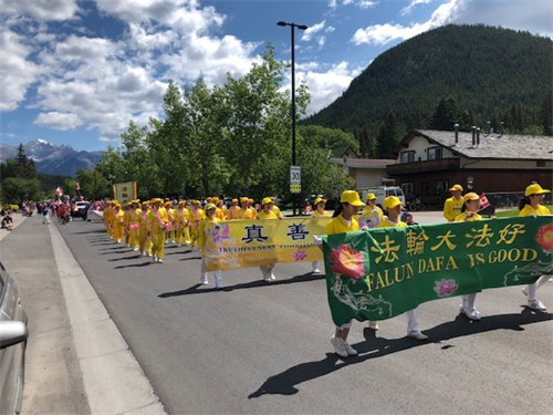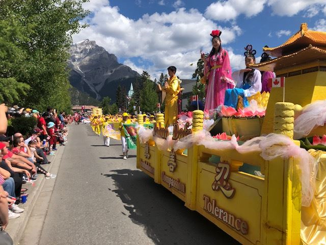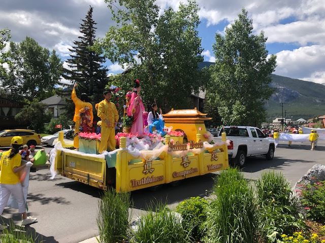 【明慧网二零一九年七月十日】七月一日是加拿大国庆日,著名的班芙国家公园风和日丽,这天班芙公园举行了盛大的游行庆祝活动。二零一九年七月一日一大早,来自卡尔加里和埃德蒙顿的法轮功学员们,投入了紧张的排练和装花车的准备工作。游行组织评委在众多的游行队伍评比后,法轮大法的花车和游行队伍获得第一名。