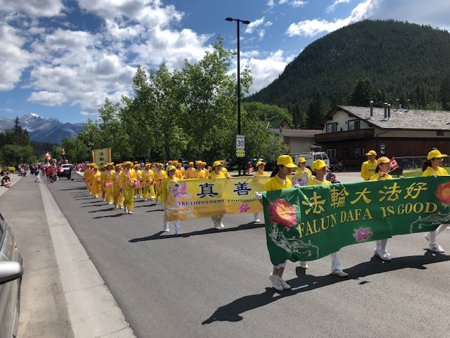 加拿大班芙国家公园游行 法轮功队伍获第一名(图)
