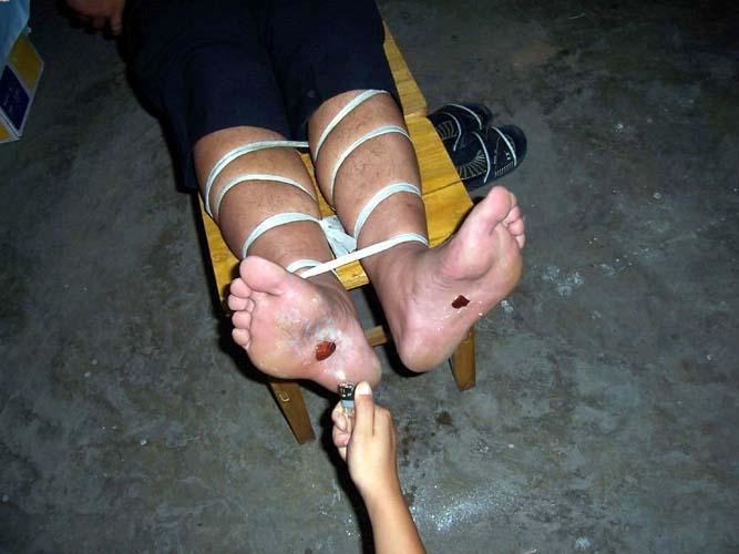 | 21 | 烘烤 | 不接触身体,用灯泡、火苗、各种电热源、高温房(窑)、夏季烈日阳光对受害人部份身体或全身实施长时间烘烤 |