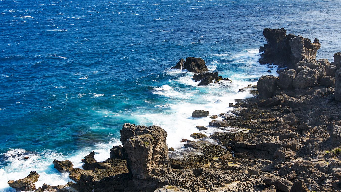 图5:垦丁猫鼻头(最右边),象一只小猫眺望着大海的猫岩,是最著名的景点。