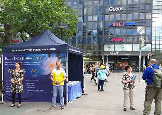 芬兰法轮功学员在赫尔辛基传播真相(图)