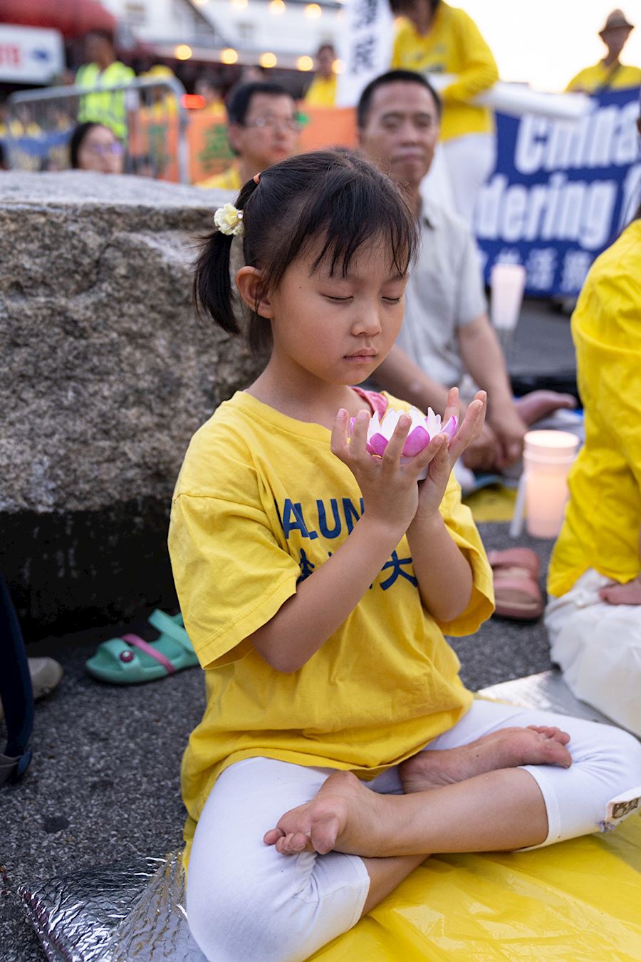 二零一九年七月十五日,千名法轮功学员来到纽约中领馆前,举行集会及烛光夜悼,谴责二十年来中共对法轮功学员的血腥镇压与残酷迫害。悼念被中共迫害致死的法轮功学员。曝光中共对按真善忍做好人的法轮功学员犯下的滔天罪恶。呼唤正义良知,共同制止迫害!中领馆对面哈得遜河边上,法轮功学员打出“停止迫害法轮功”、“全球起诉江泽民”、“法轮大法好”等横幅,他们沿着河岸整齐地席地盘腿而坐,延绵上百米。