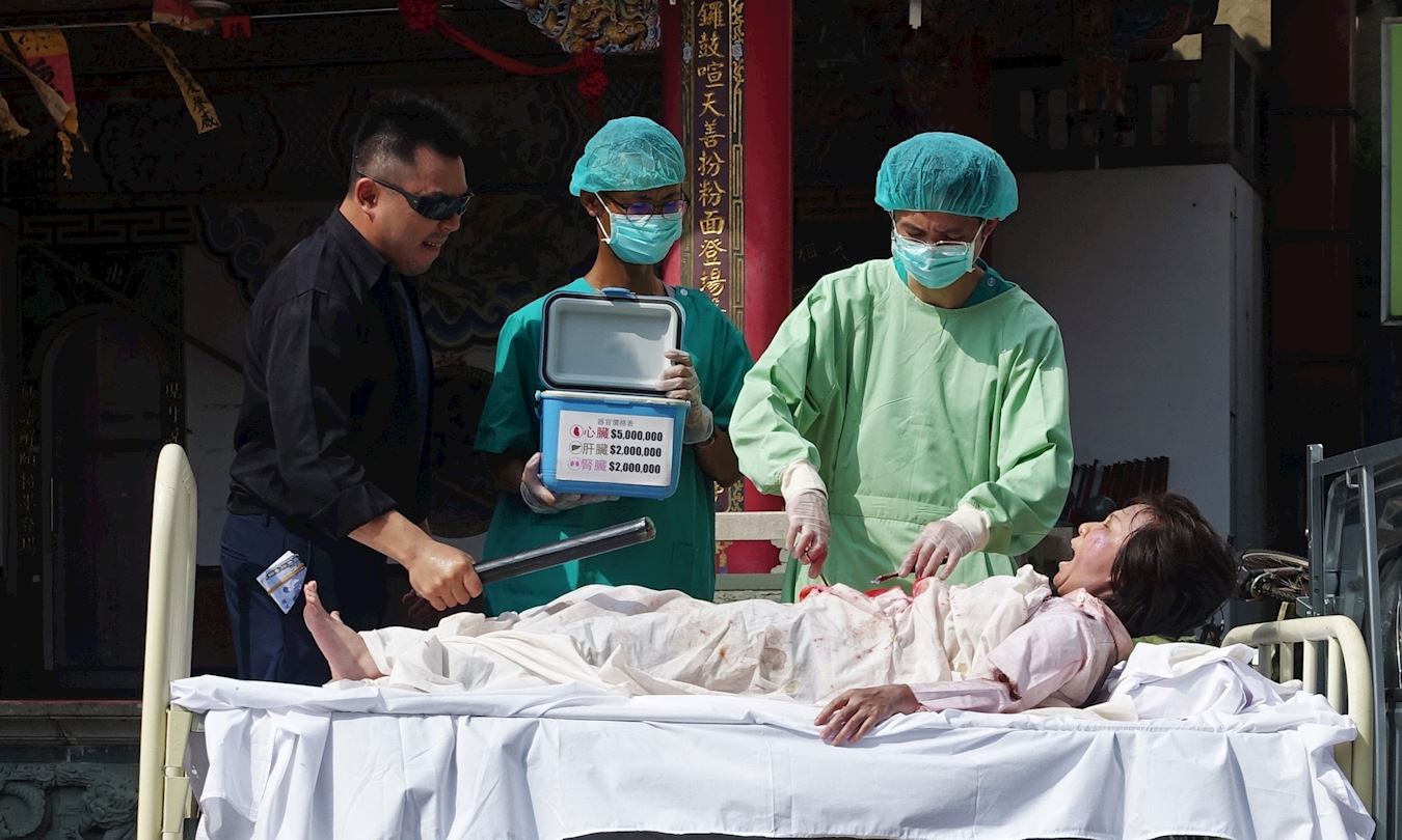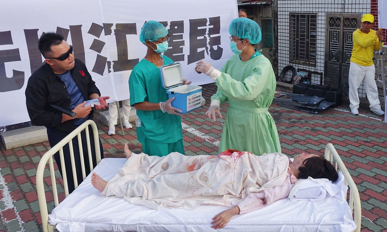 图:揭露中共活摘法轮功学员器官的行动剧令金门市民震惊