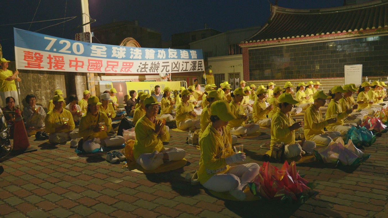 晚间,法轮功学员举行悼念会,点亮烛光,悼念这20年来在中国被中共迫害致死的法轮功学员。