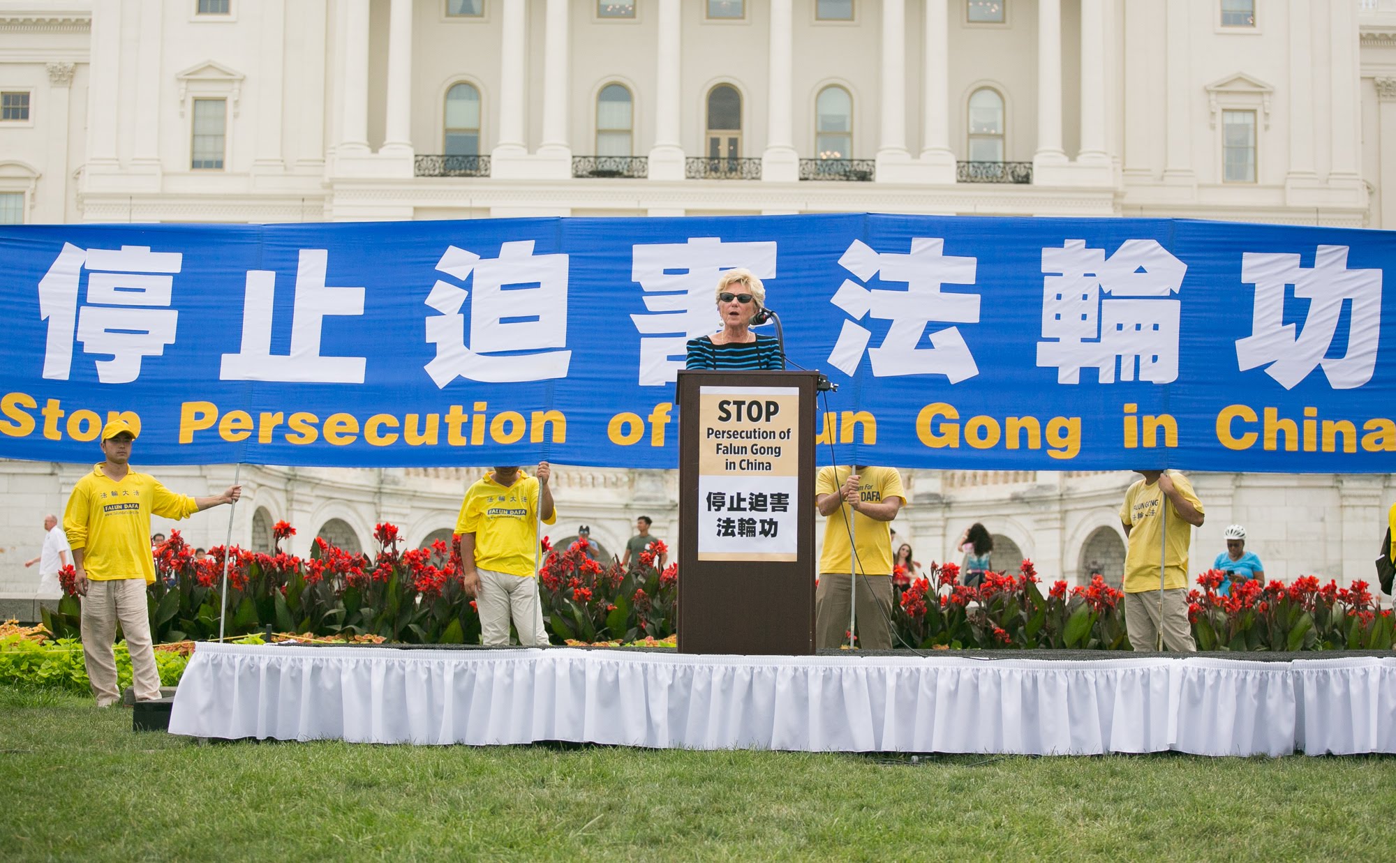 美国德州国会众议员、美国众议院汤姆·兰托斯人权委员会的成员、众议院安全委员会成员希拉·杰克逊·李(Sheila Jackson Lee)表示,她相信所有人都应该享有宗教信仰的自由。“那些仅仅是由于自己的信仰而死亡或失踪的人应该得到一个说法。因此我今天想来参加了集会,站在这片非常神圣的土地上,站在这片播种自由的土地上,重申这个事实。正如我们宪法所规定的,我们(美国人)拥有信仰自由。我们相信中国也必须站起来接受一个事实,那就是我们不该允许一场”或“不能允许一场对信仰群体的持续的迫害,或对那些法轮功学员家人的持续迫害。”