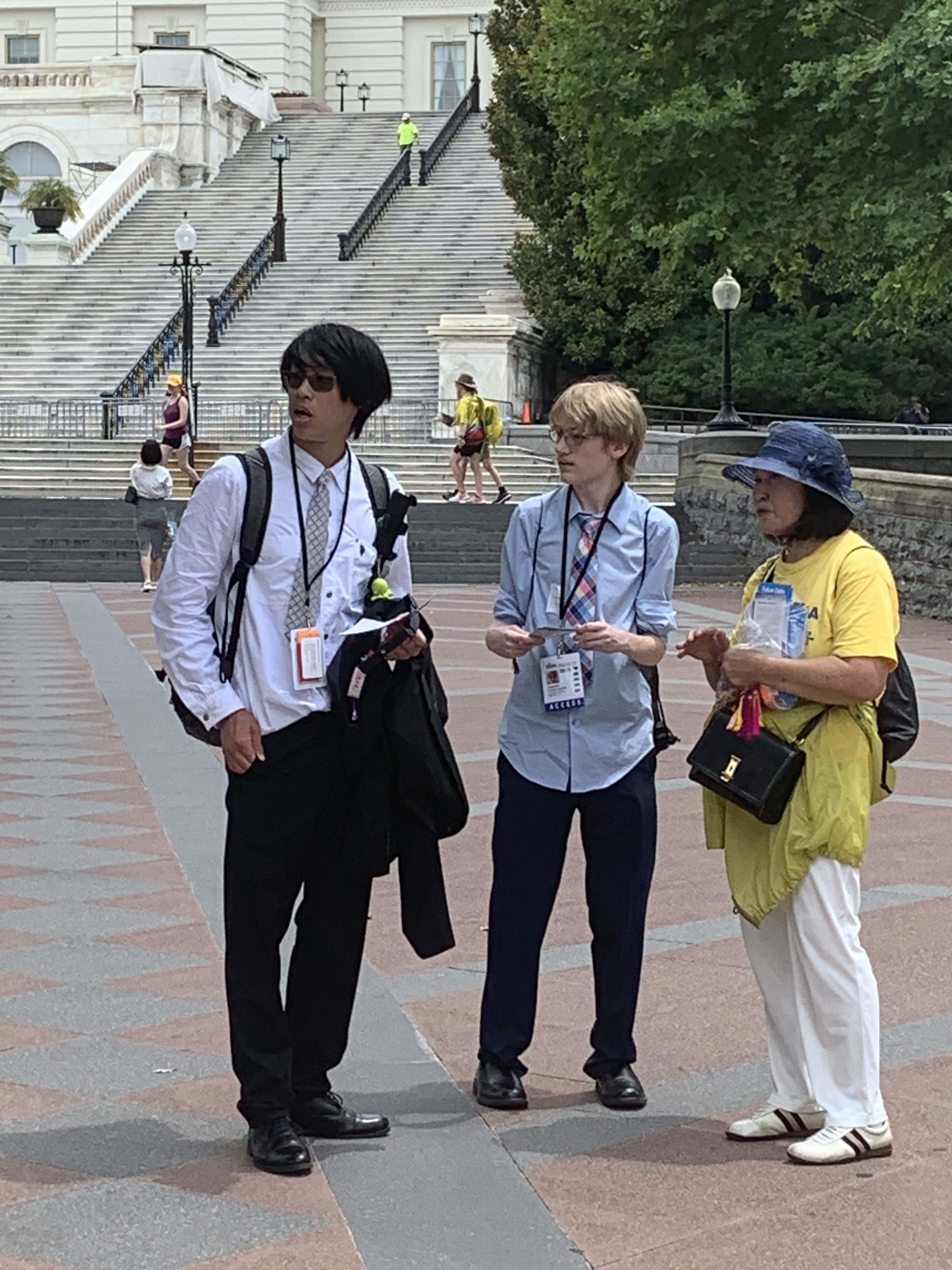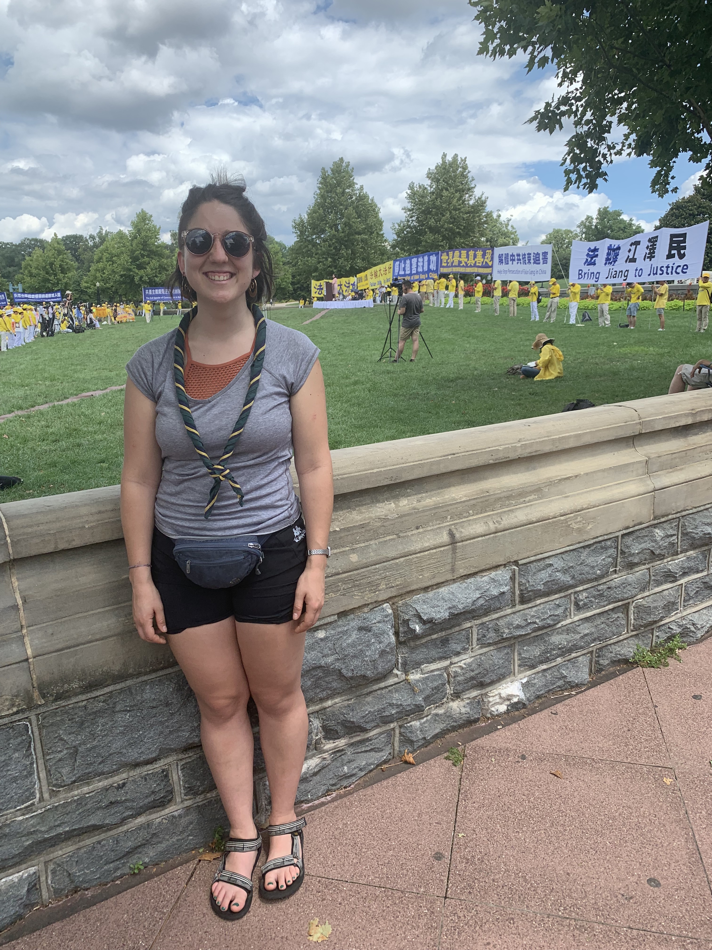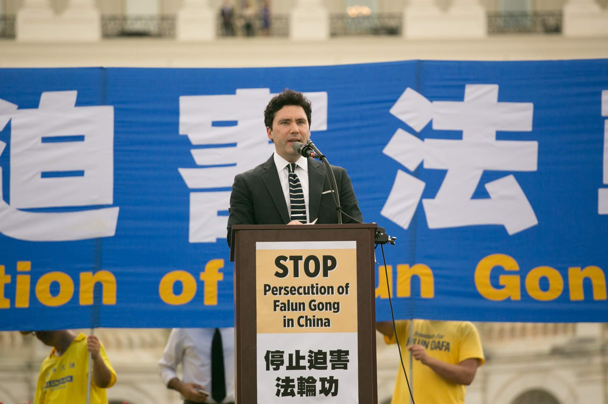 保罗(Paul)在国会山附近上班。他在中午吃饭时间散步,见到集会,因此停下观看。他说他了解在中国对人权的侵害,并表示美国政府几乎没有提供实质的帮助。他说,“大家都在说俄国是问题。我觉得其实中国是更大的问题,不只是它在经济上的一些做法,更糟糕的是它怎样对待自己的公民:逮捕他们,迫害他们,剥夺他们基本的人权。”