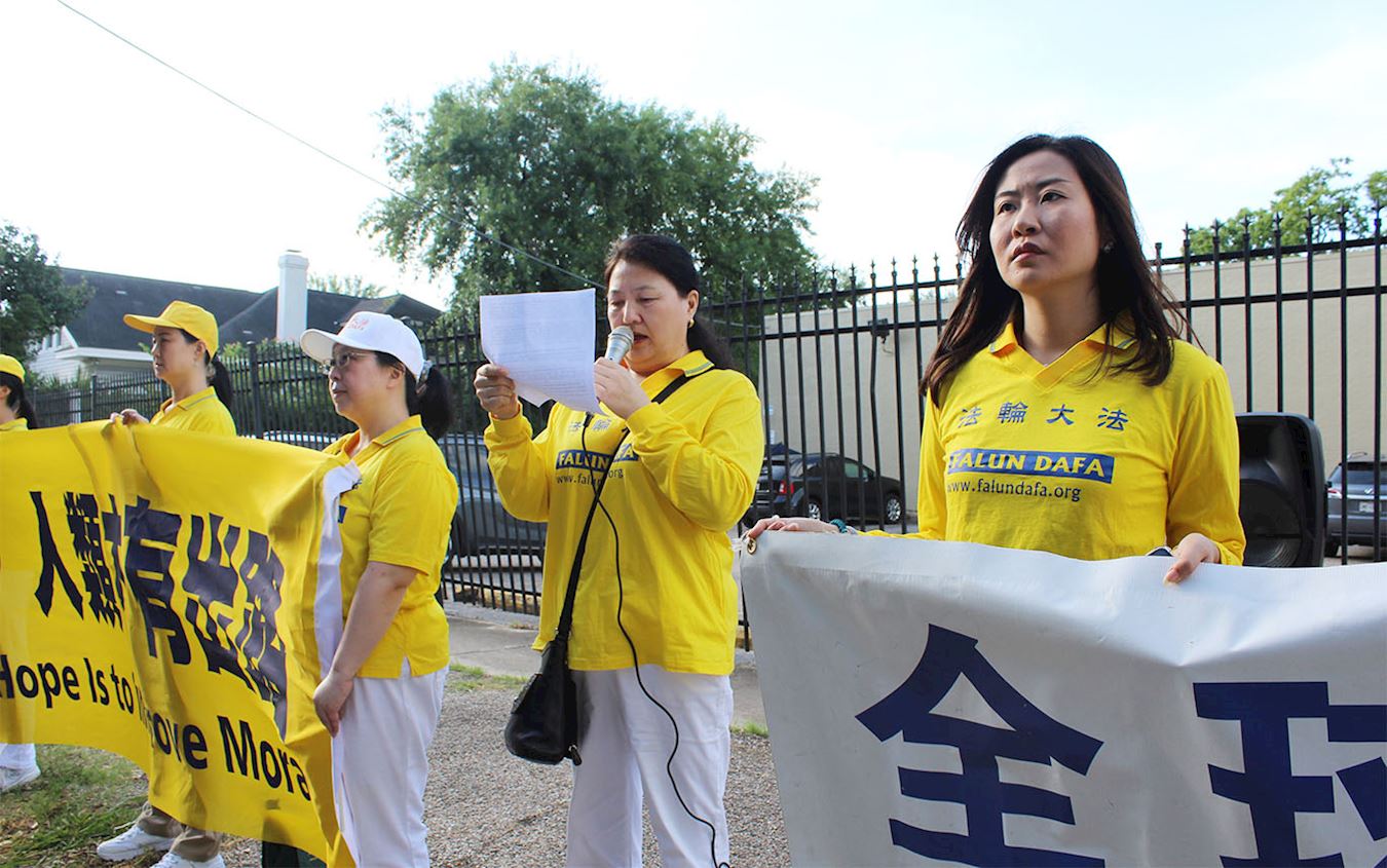![]() 图1:反迫害二十周年, 休士顿学员中领馆前集会揭露迫害 |