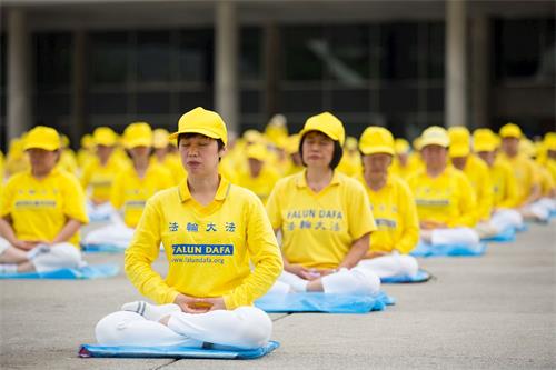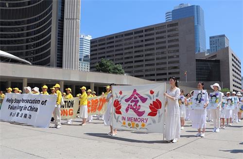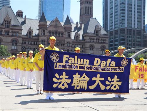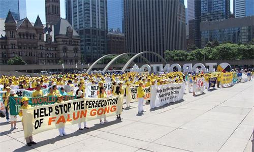 【明慧网二零一九年七月二十一日】(明慧记者章韵加拿大多伦多报道)法轮功学员反迫害二十周年之际,二零一九年七月二十日,加拿大法轮功学员聚集在多伦多市政府广场前举行大炼功和大型集会。法轮功学员已经连续20年以和平理性的方式,反对中共针对法轮功的迫害。法轮功学员的勇气和毅力,感动了当地主流社会。