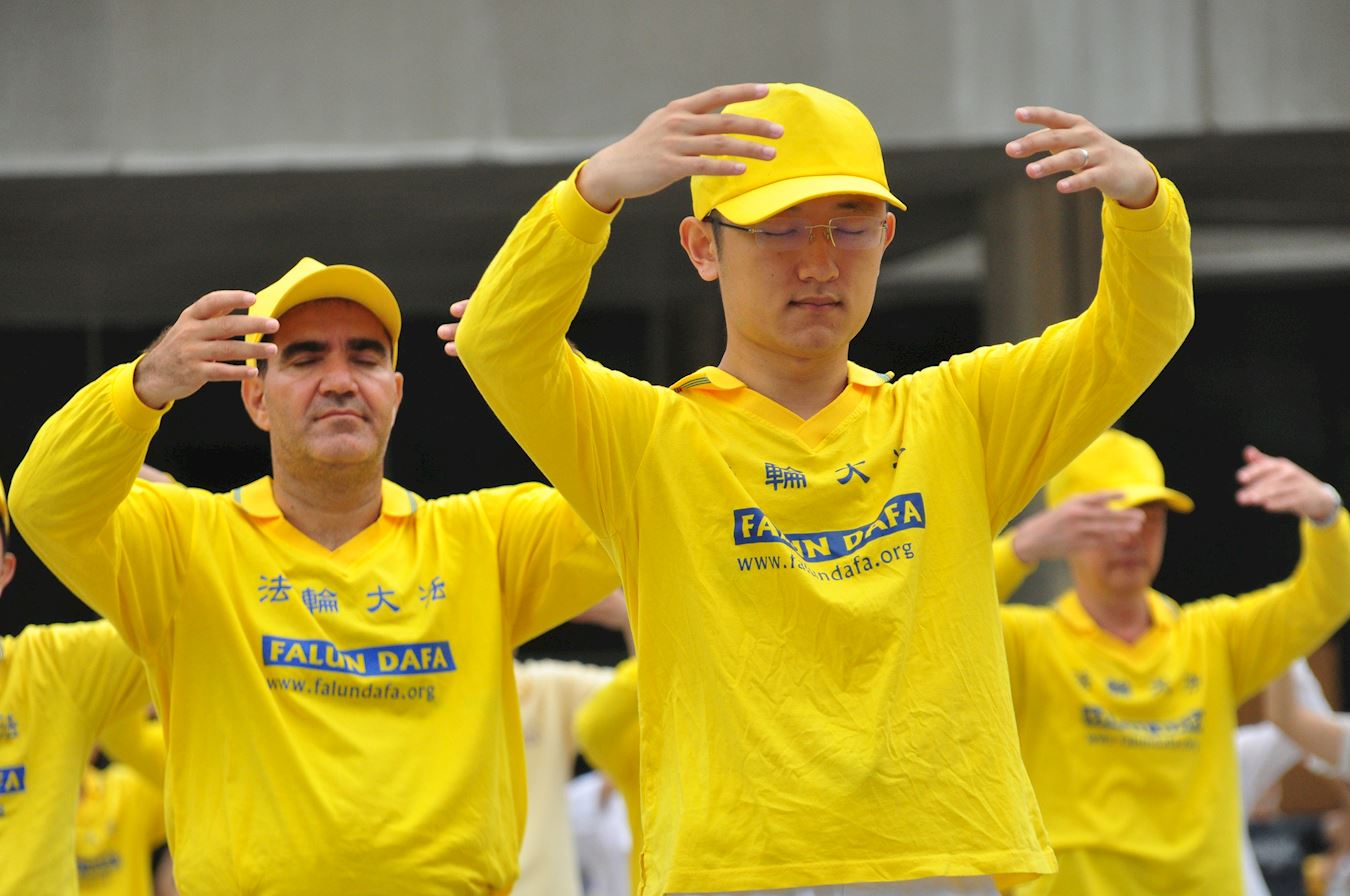 图1~4:法轮功学员在多伦多市政府广场前举行大炼功。